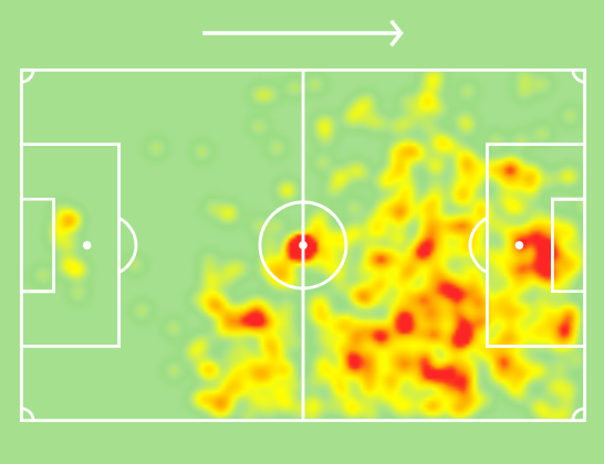 Lukaku’s heatmaps show that he is seeing a lot more of the ball this season in the inside-right channel and in the “second six-yard box” between the six-yard box and the penalty spot.