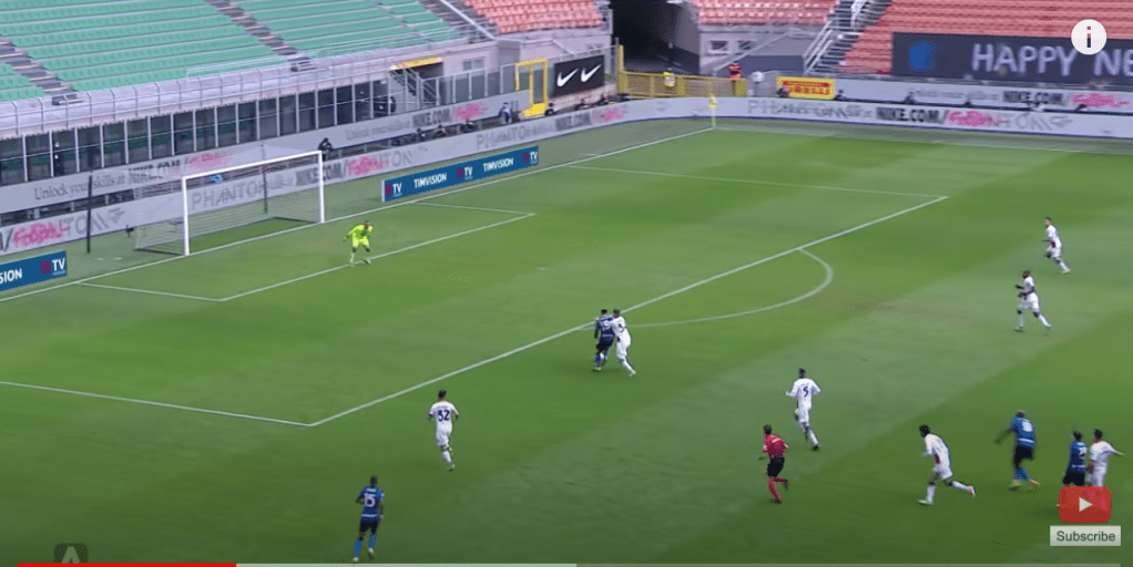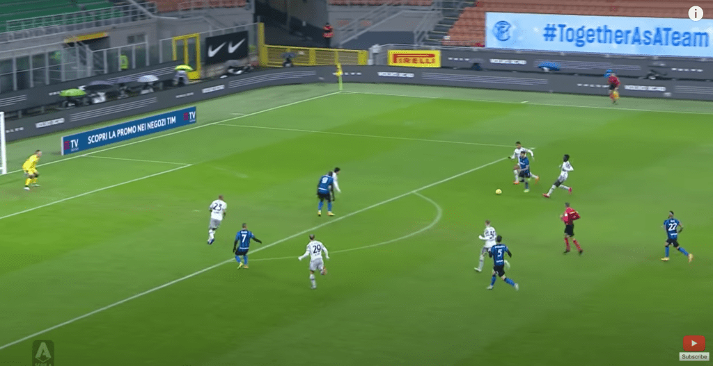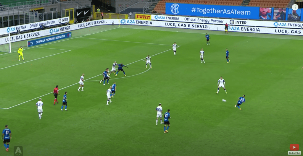 By anticipating how the move would develop after laying the ball off, Lukaku gets himself into the perfect position to convert Hakimi’s cutback as Lukaku is unmarked at the edge of the six yard box.
