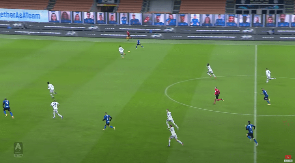 A good example of the space that Lukaku’s movement creates for Hakimi came in Hakimi’s second goal against Bologna last month, a well-executed counter-attack that sealed Inter’s 3-1 home victory.